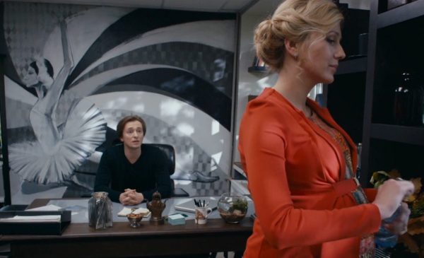 Темников оказывается замкнутым в своем кабинете, пропитанном внутренними терзаниями творчества. На стене — образ Майи Плесецкой. И ему ведь так важно тоже оставить частичку великого после себя.